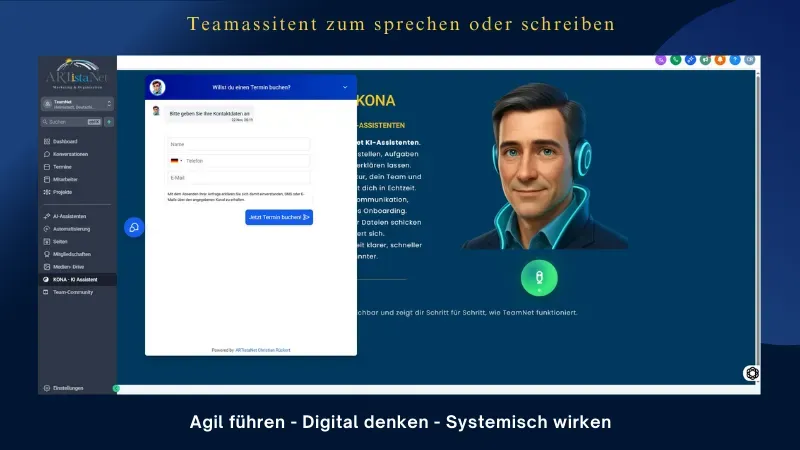 TeamNet hingegen organisiert die Menschen und Teams im Unternehmen: Zusammenarbeit, Aufgaben, Verantwortlichkeiten, Onboarding, Meetings, interne Prozesse und KI.
